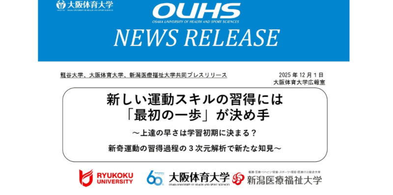 <3大学共同リリース>新しい運動スキルの習得には 「最初の一歩」が決め手 ~上達の早さは学習初期に決まる? 新奇運動の習得過程の3次元解析で新たな知見~