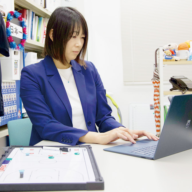 大体大出身で、在学中は女子バスケットボール部に所属していました。現在も監督として現場に携わっています。