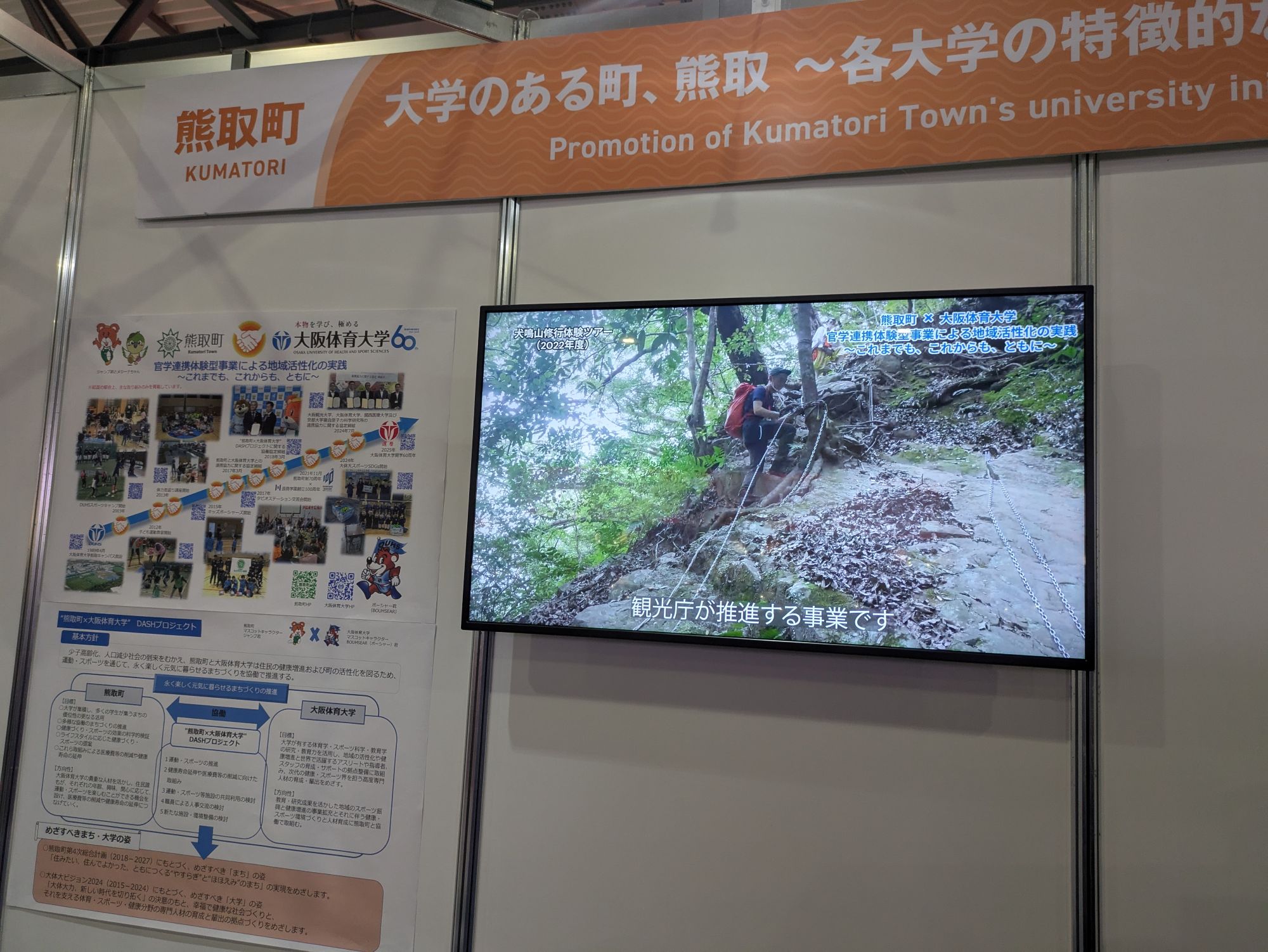 熊取町は「大学のある町、熊取」をテーマに大阪体育大学を含む4大学のブースを設置。大阪体育大学は「~これまでも、これからも、ともに~」のテーマで出展しました。