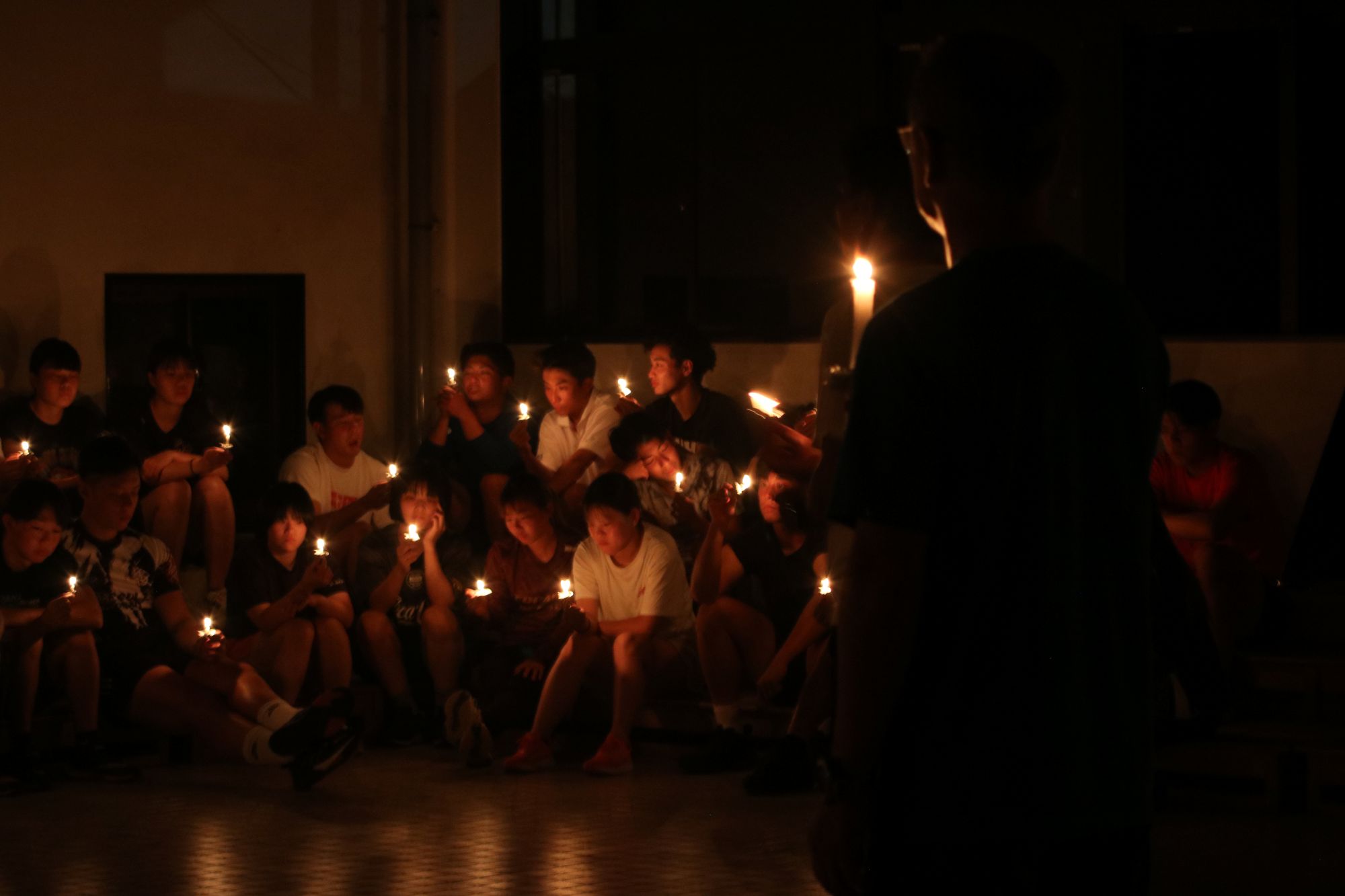 全員でロウソクを持ち実習を振り返ります