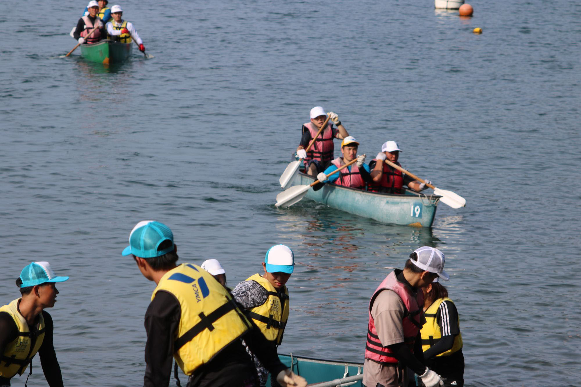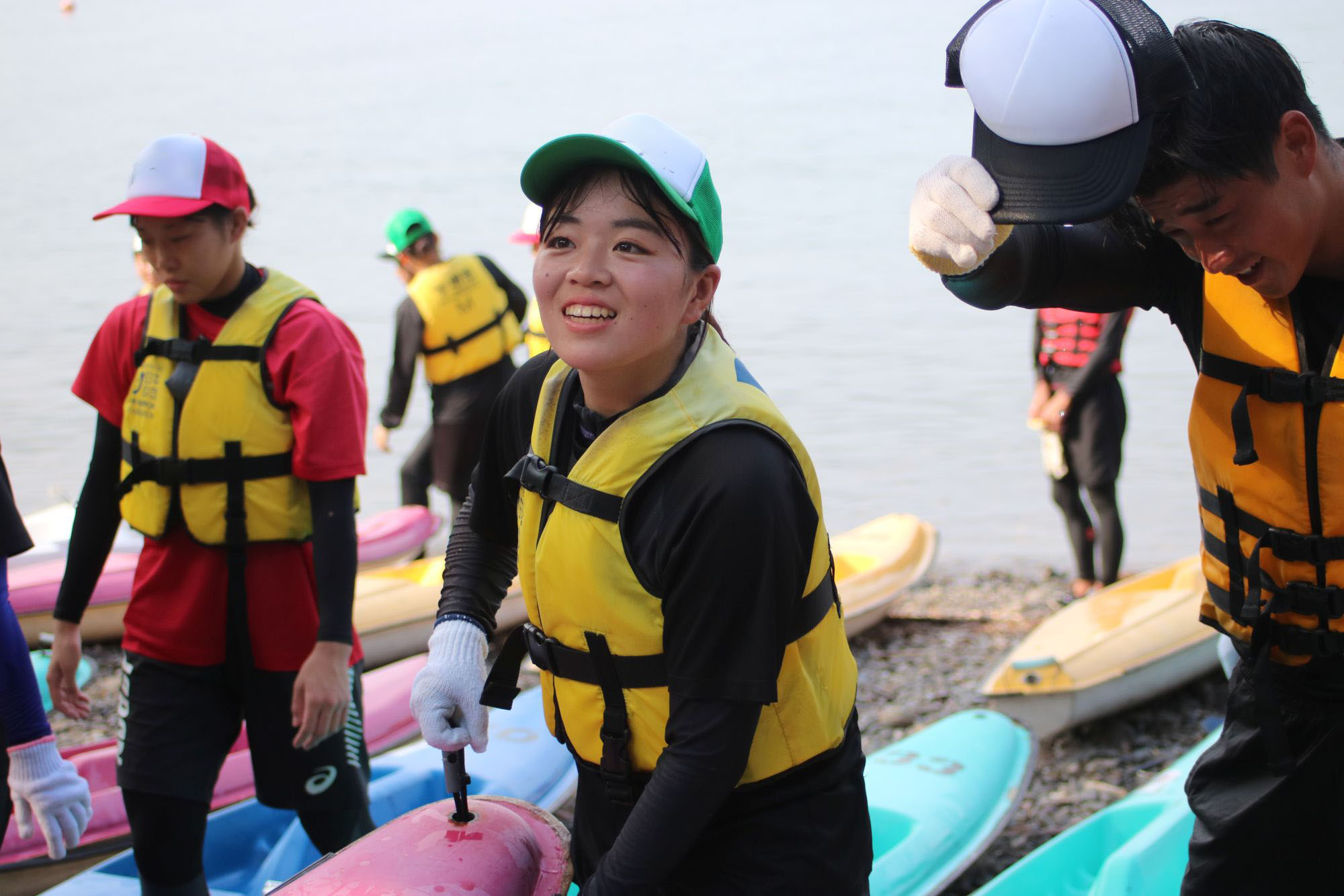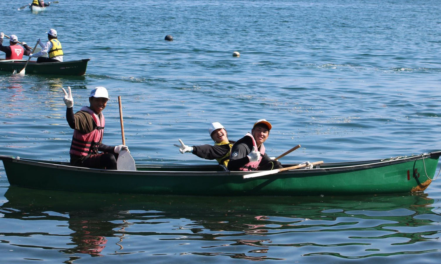 カヌーは複数人で漕ぎます