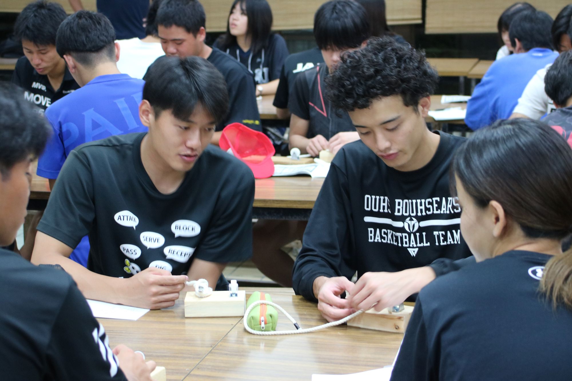 また、夜の講習も充実した内容で、学生は5班に分かれて班長・副班長のリーダーシップの下、非日常空間で起きる課題を工夫して解決していき、中身の濃い実習となりました。