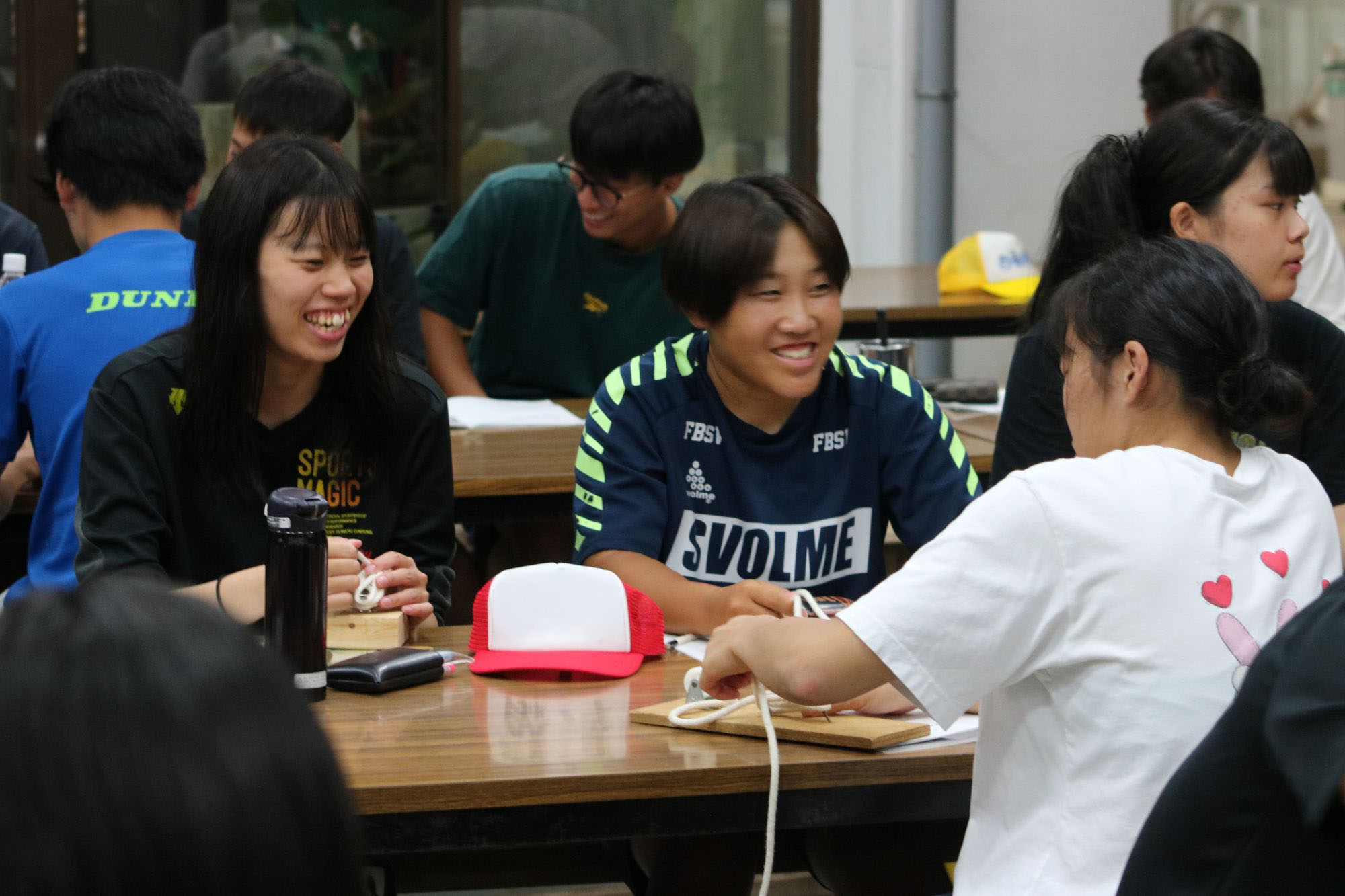 2日目、3日目は午前7時過ぎから朝のつどいで集まり、学歌斉唱、学旗掲揚、活動の説明、ラジオ体操を実施。朝食後、早速プログラムが開始されました。