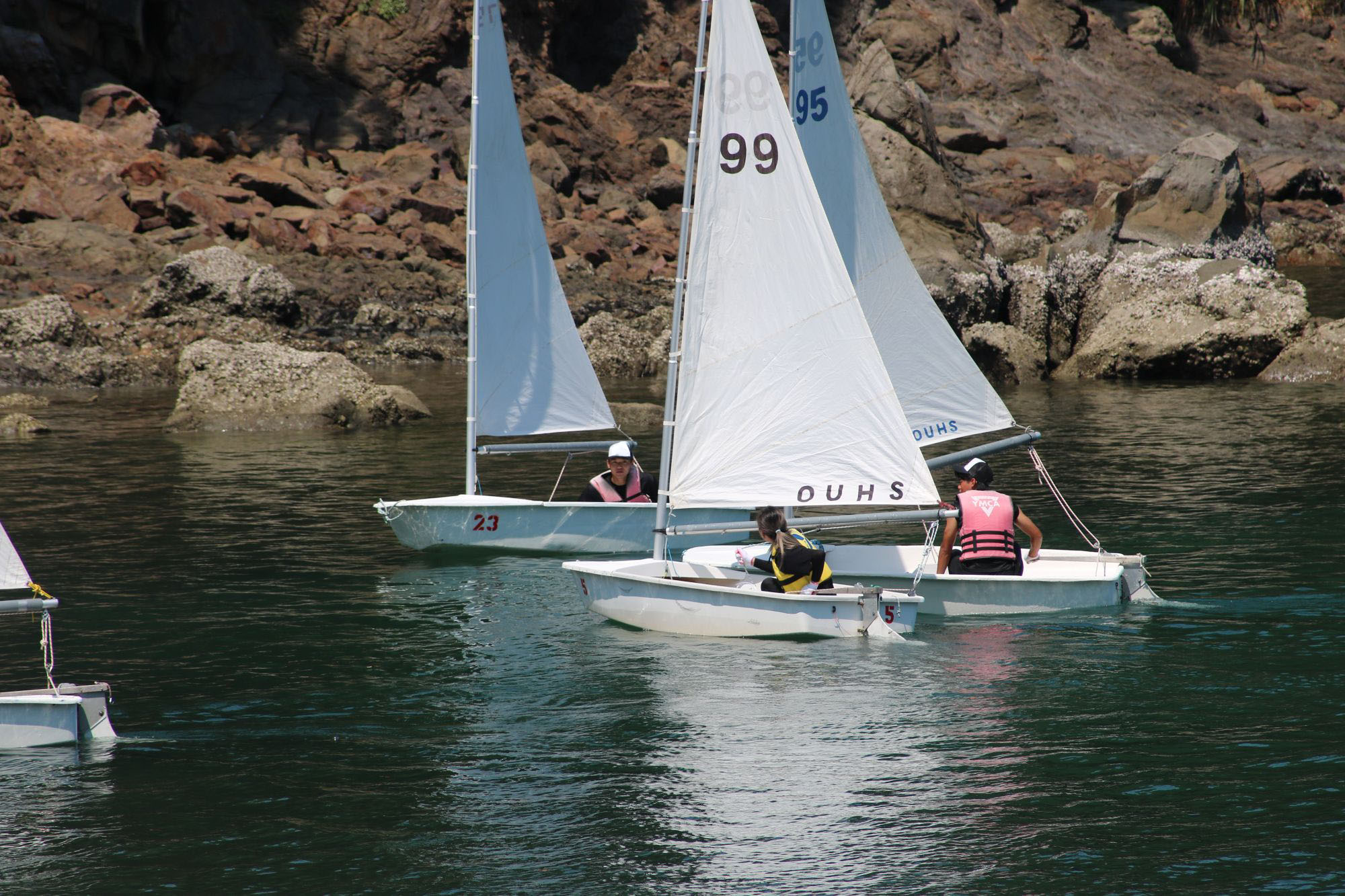 ヨット(シカーラ)は3名が乗船し操船します。ヨット(ダックリン)に比べて一つ帆が多い分、早く進むことができますが、バランスを崩しやすく操船が難しくなります。チームワークが大切です。