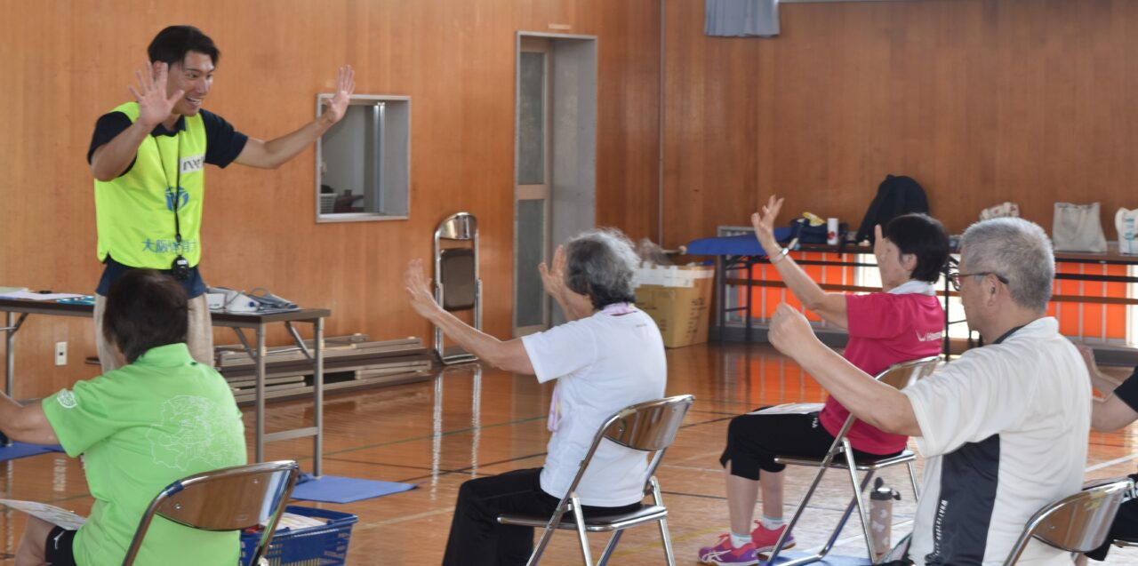 大阪体育大学社会貢献センターが主催し、今年は応募があった学生16名と、第1回から参加しているスポーツ科学部・池島明子教授(レクリエーション、健康づくり)、中山健教授(スポーツ社会学)ら教職員4名の計20名が参加しました。