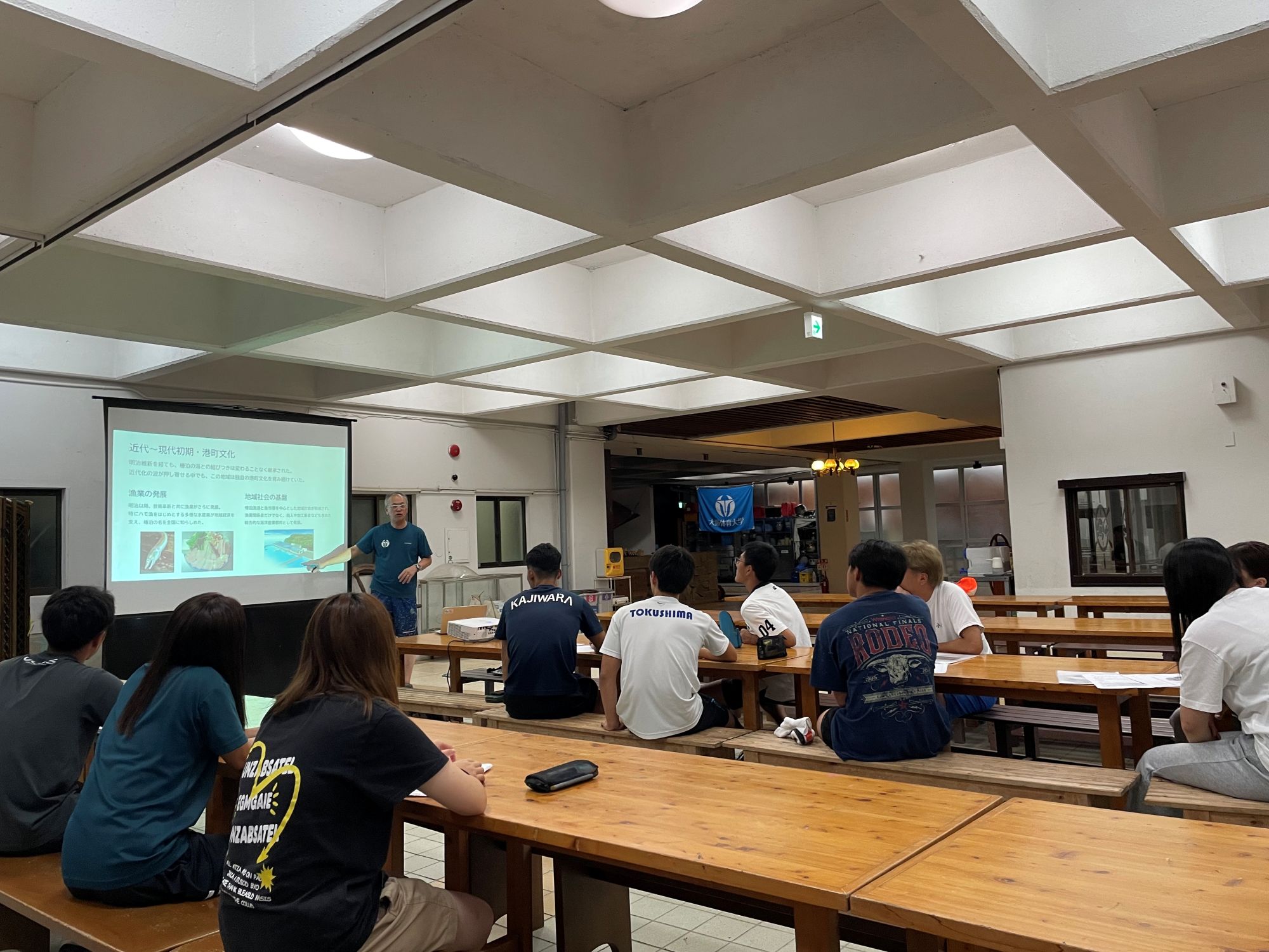 野々島に関するレクチャーを受ける学生