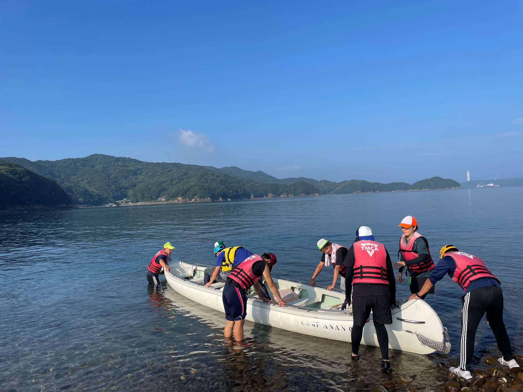 マリンスポーツキャンプ実習は、前身である海洋スポーツキャンプ実習の内容を継承しつつ、新たに同センターから約800m沖の無人島、野々島をジャンボカヌーで一周し宿泊するプログラムが追加されています。