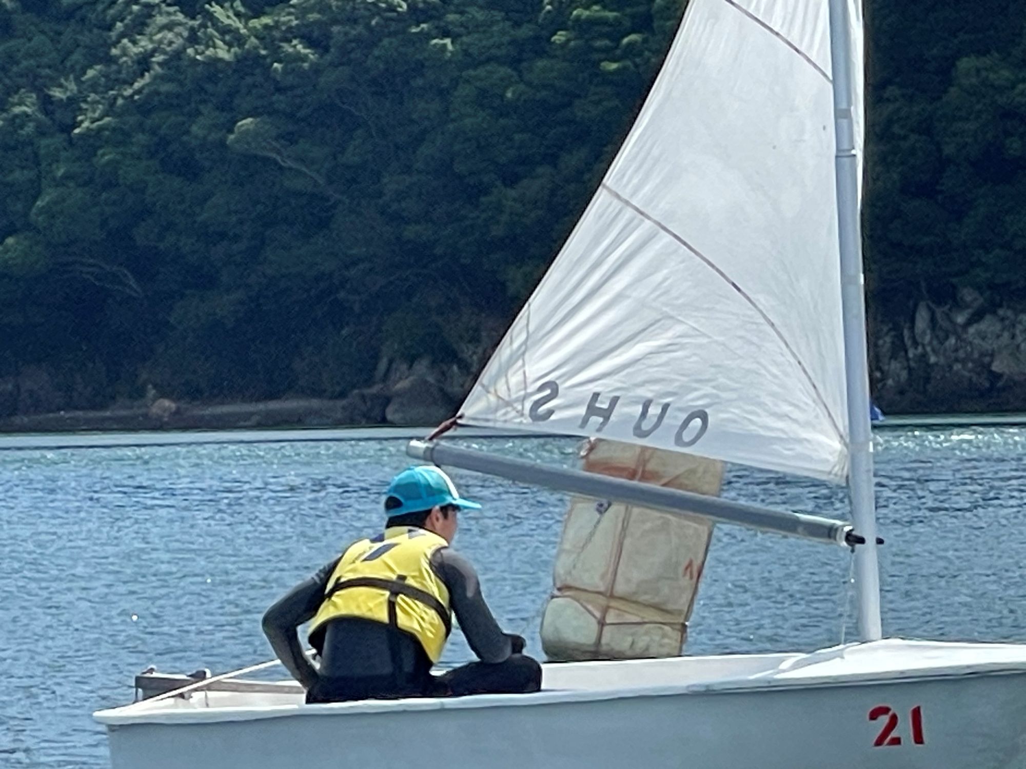 1人乗りのヨット「ダックリン」に乗っている学生