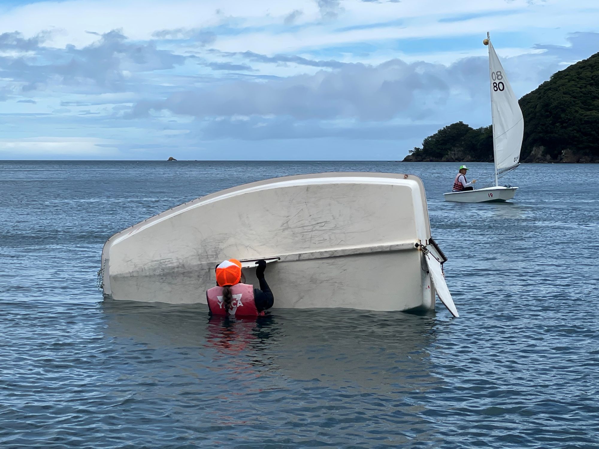 ヨットが倒れても自分で立て直します