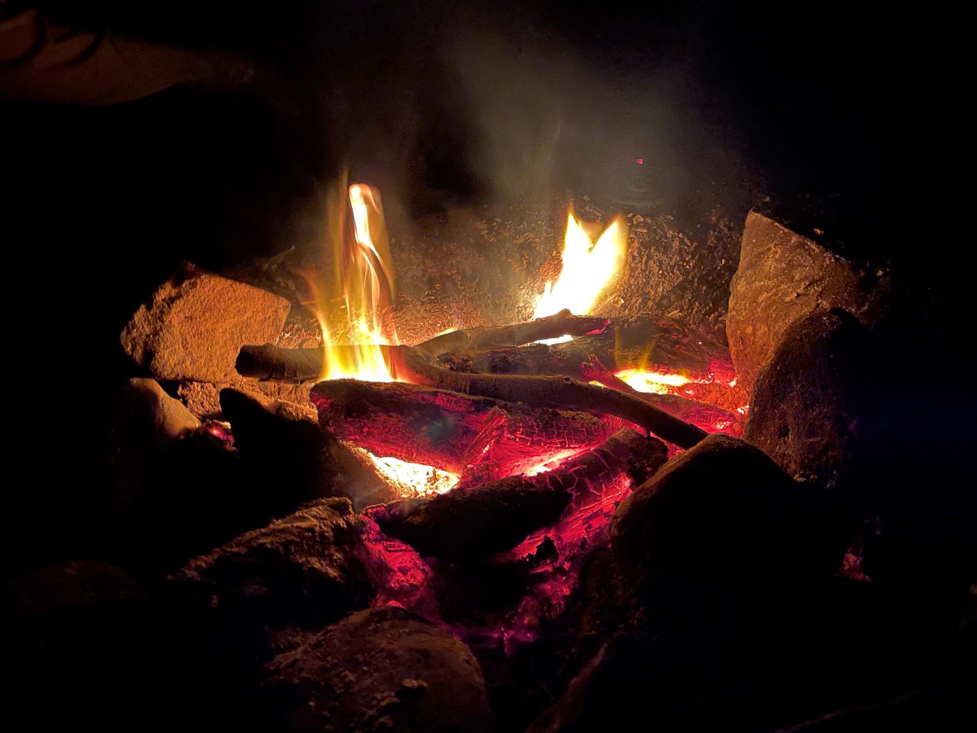 夜は焚き火を囲んで語り合います
