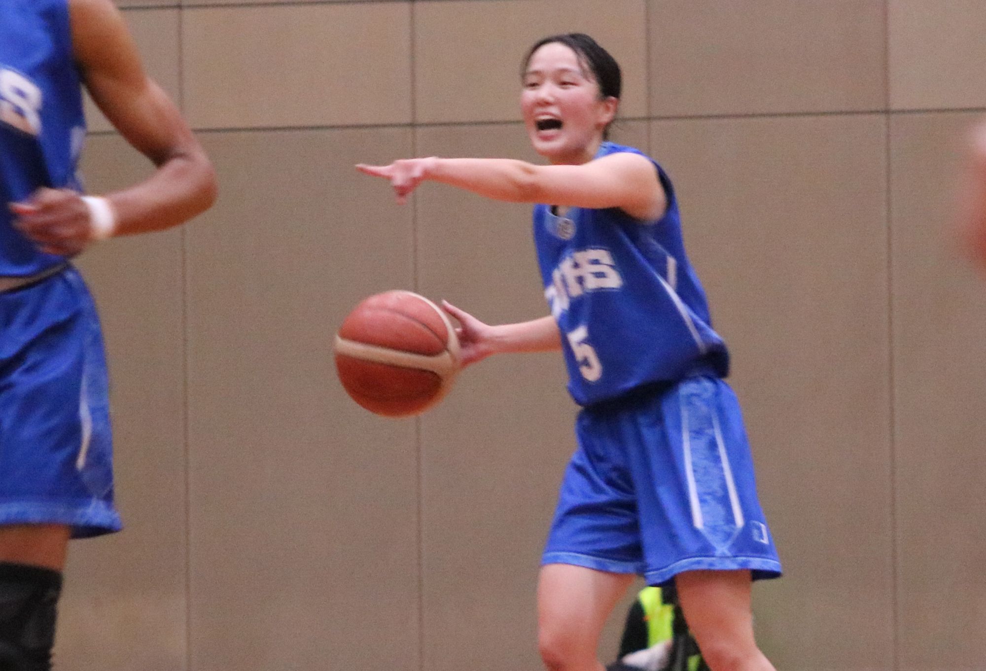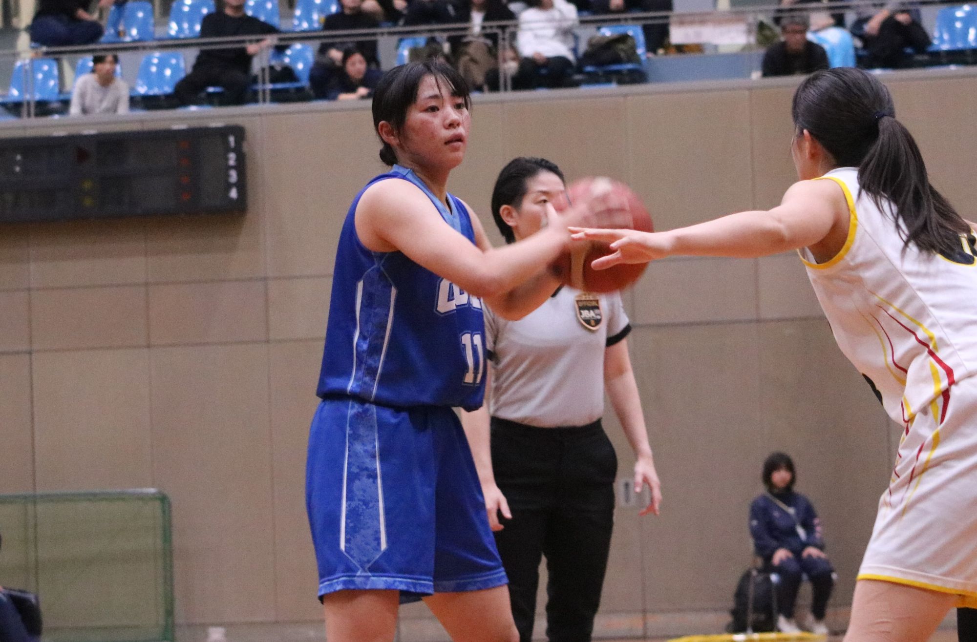 試合の前半戦は大阪人間科学大学にリードされ、第2クォーター終了時点で27対30で劣勢。しかし後半は、「走って、守って、速攻で決める」本来のアグレッシブなバスケットを展開。
