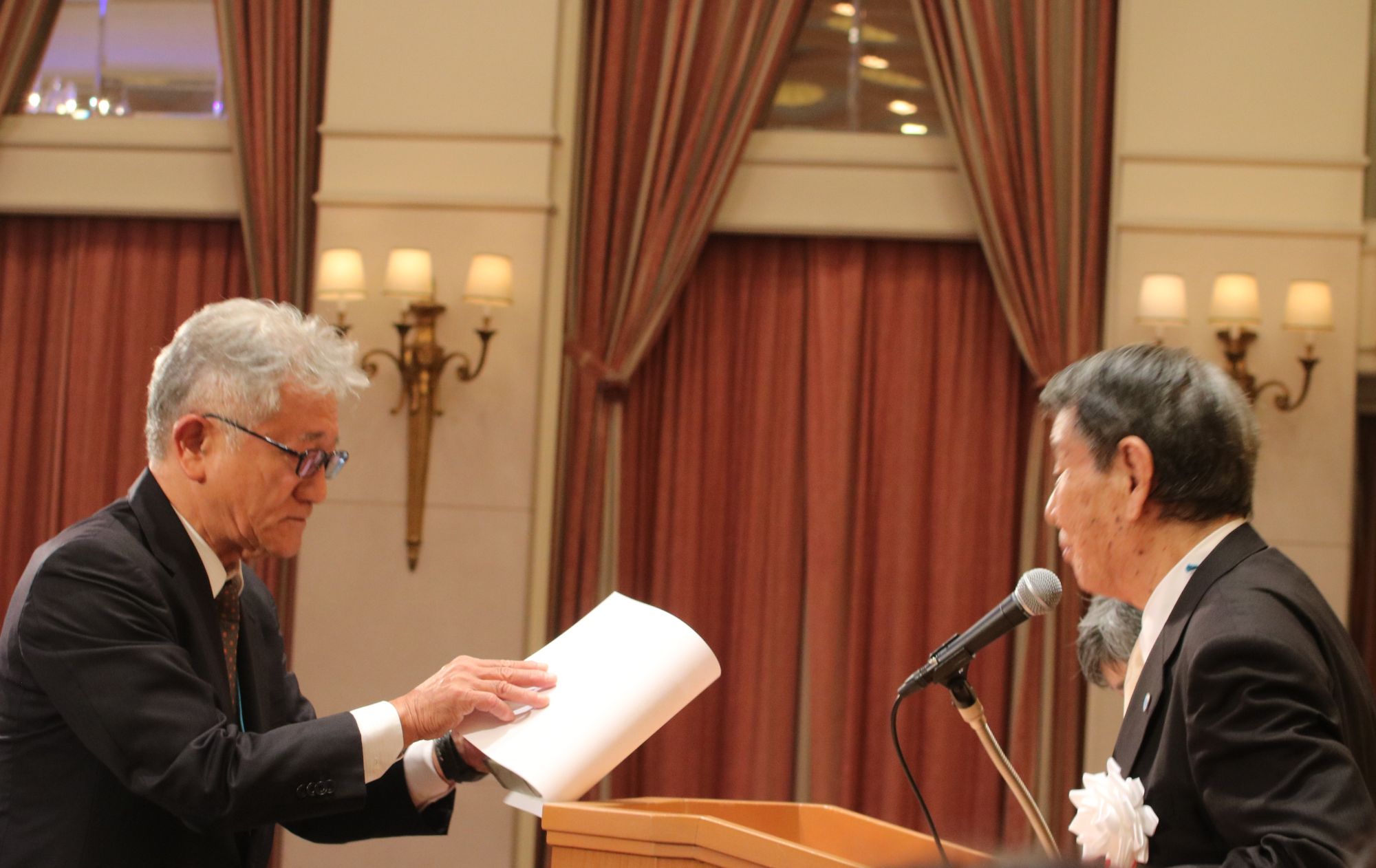 さらに各同窓会支部より推薦された卒業生、役員として長年の尽力があった卒業生の表彰式がおこなわれ、長家会長より感謝状と記念品が手渡されました。