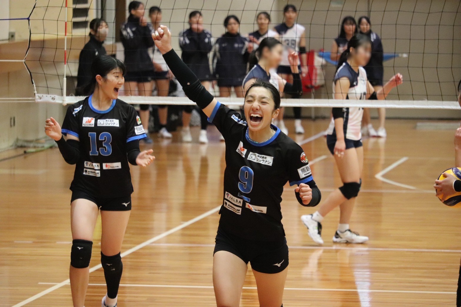 チームキャプテンの松永あやめ(体育学部4年、愛媛・済美)は、「レギュラーが2名ケガで出場できない中、1年生が活躍してくれました。ディフェンスを重視しているチームですが、一番ブロックが機能したのは2日目の神戸親和大学戦で伸び伸びと試合できていて良かったと思います。全日本インカレも自分たち次第で勝負できると思うので頑張ります」と話し、チームを率いる長江晃生監督は「今大会、度重なるアクシデントを乗り越えたことで選手たちは多くの成長を見せた一方、準決勝では技術・判断・メンタル面で改善すべき点が明確になった。この課題をチーム全体で受け止め、日々のトレーニングに落とし込むことが全日本インカレ上位進出に向けての鍵になる」と先を見すえていました。