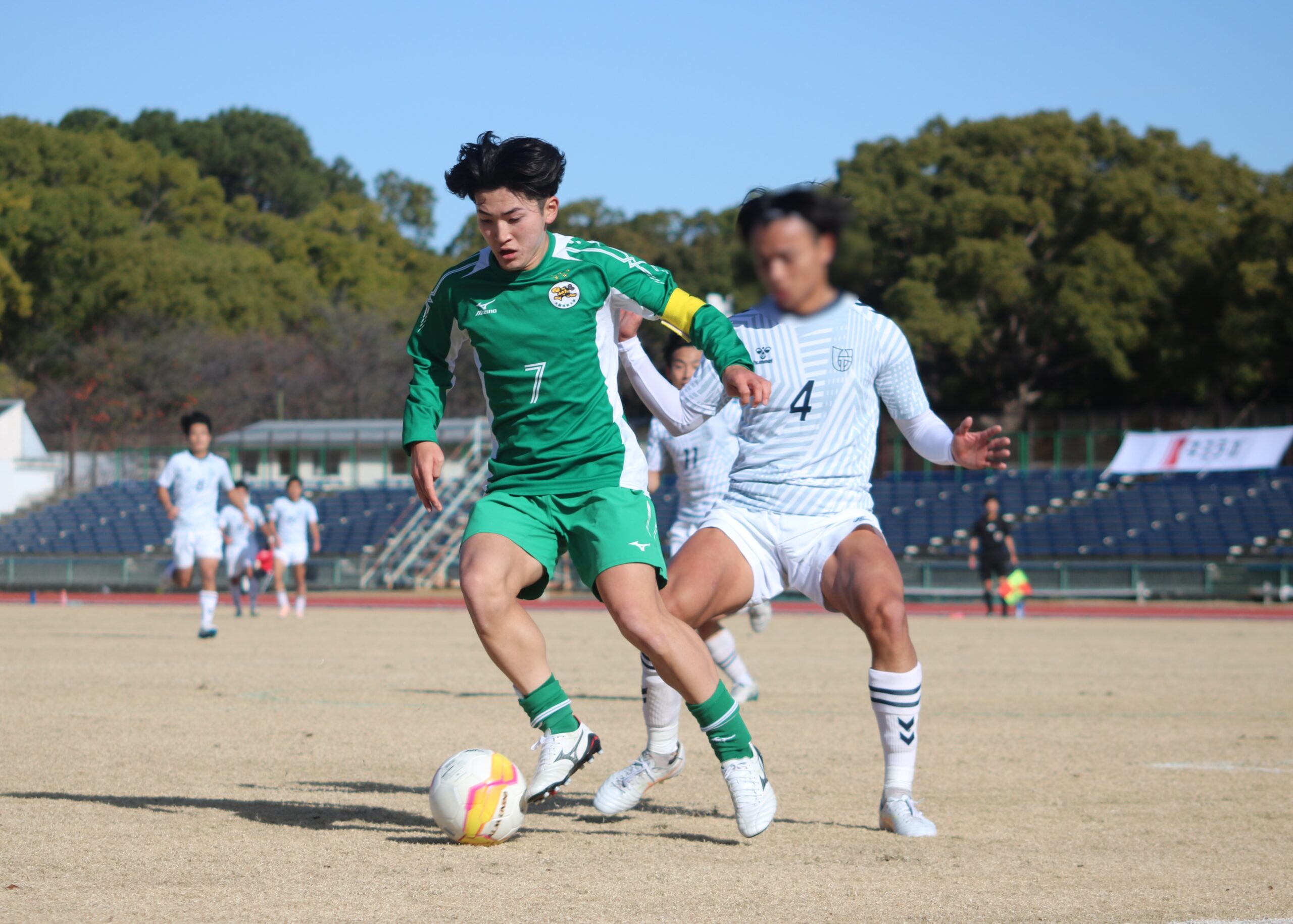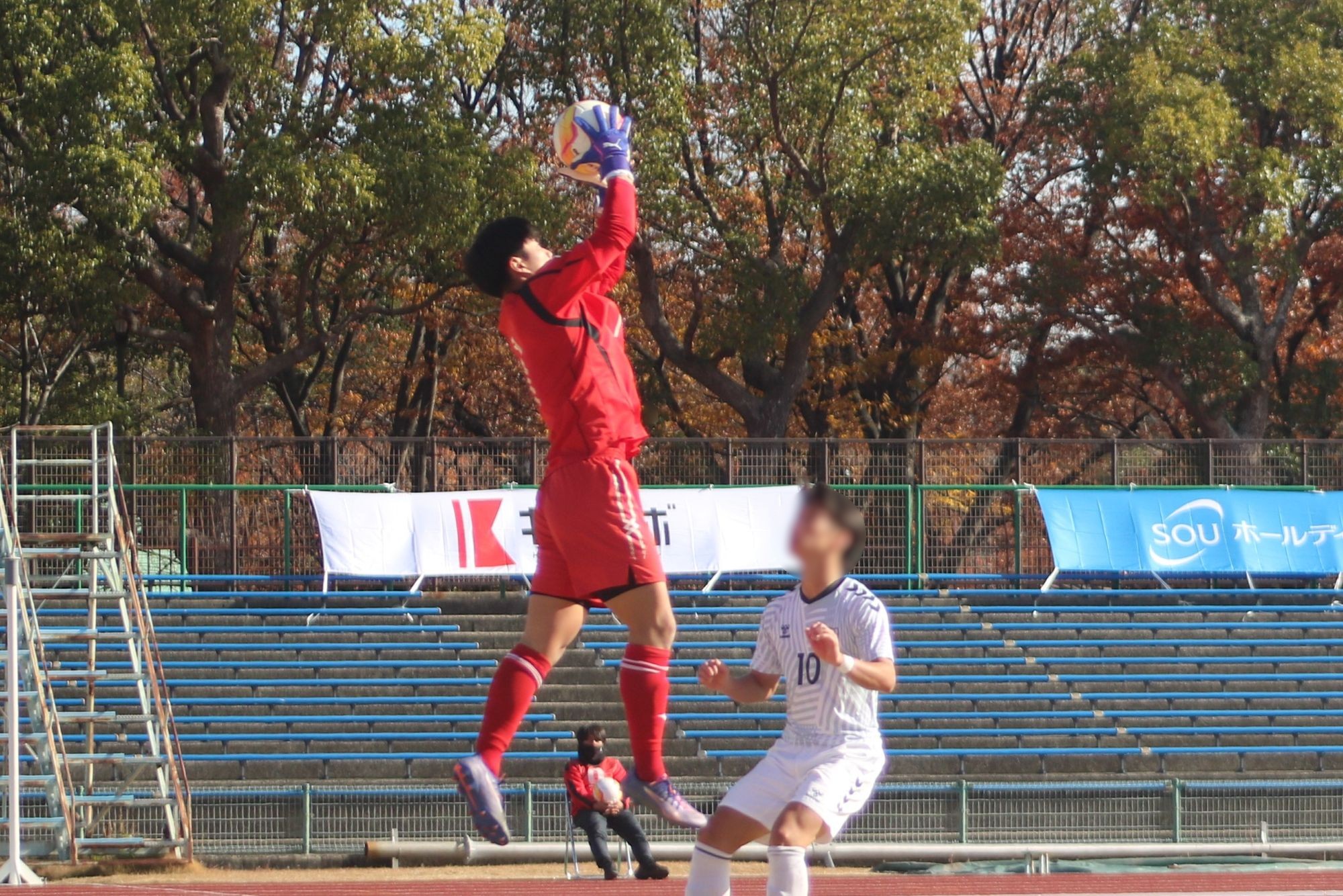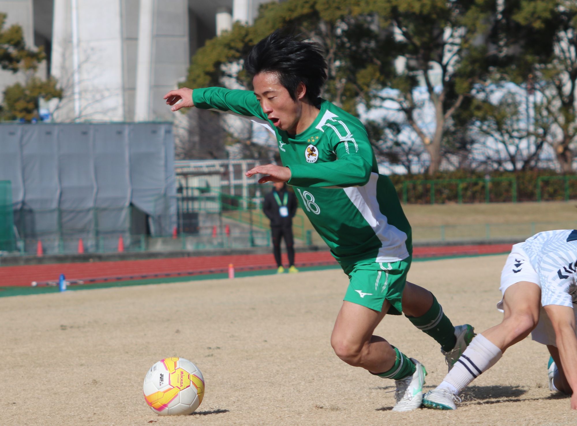 前半は高松大学に攻め込まれる場面も見られたものの、GK・長野大河(体育学部4年、島根・立正大学淞南高校)の好セーブもあり、無失点で折り返します。
