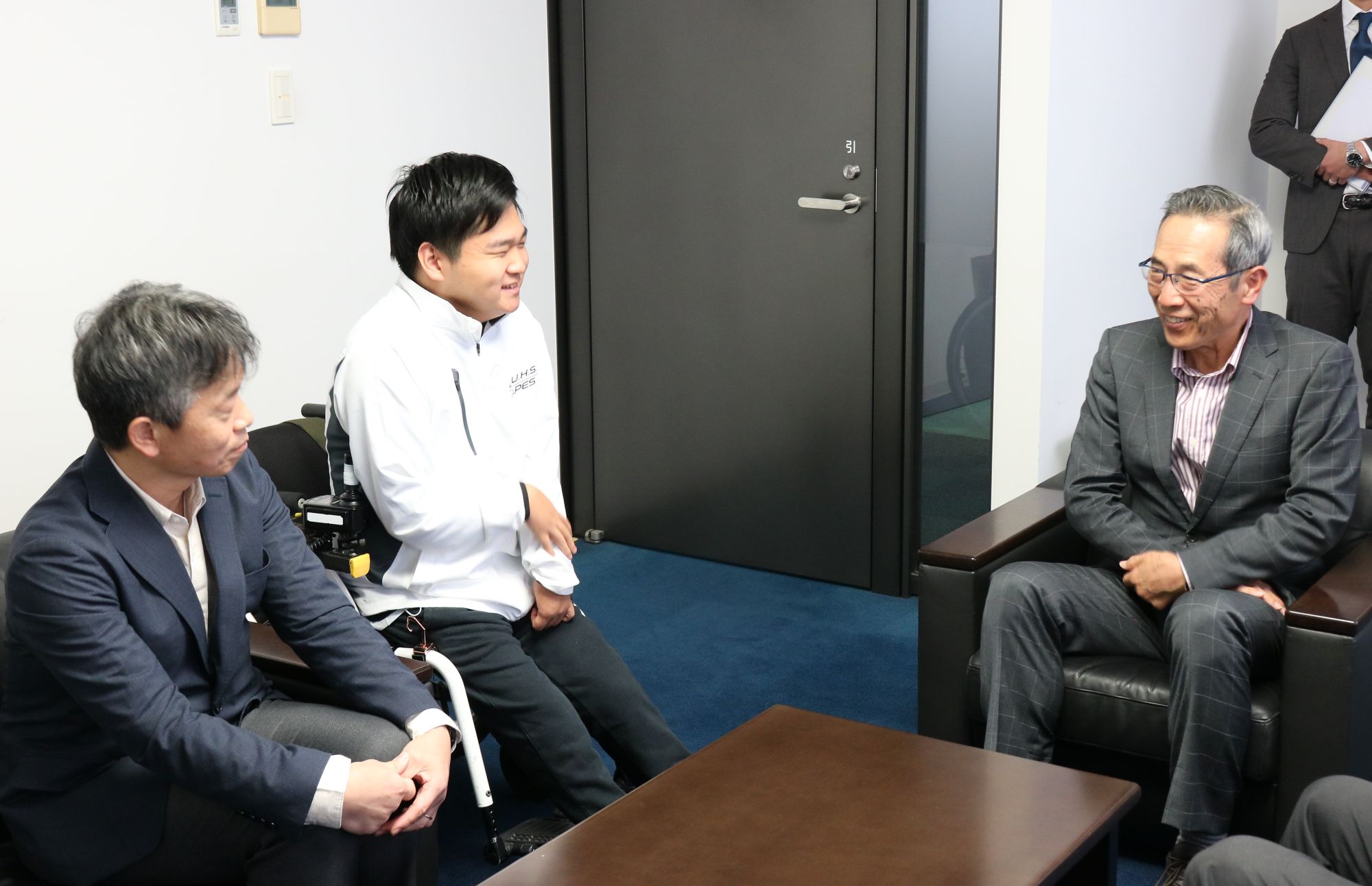 また、アダプテッド・スポーツ部の曽根裕二監督は「日本は世界でも強豪として位置づけられ、特定のクラスだけではなく、すべてのクラスで高いレベルで戦える点が特長」などと説明し、野田理事長らは興味深そうに聞き入っていました。