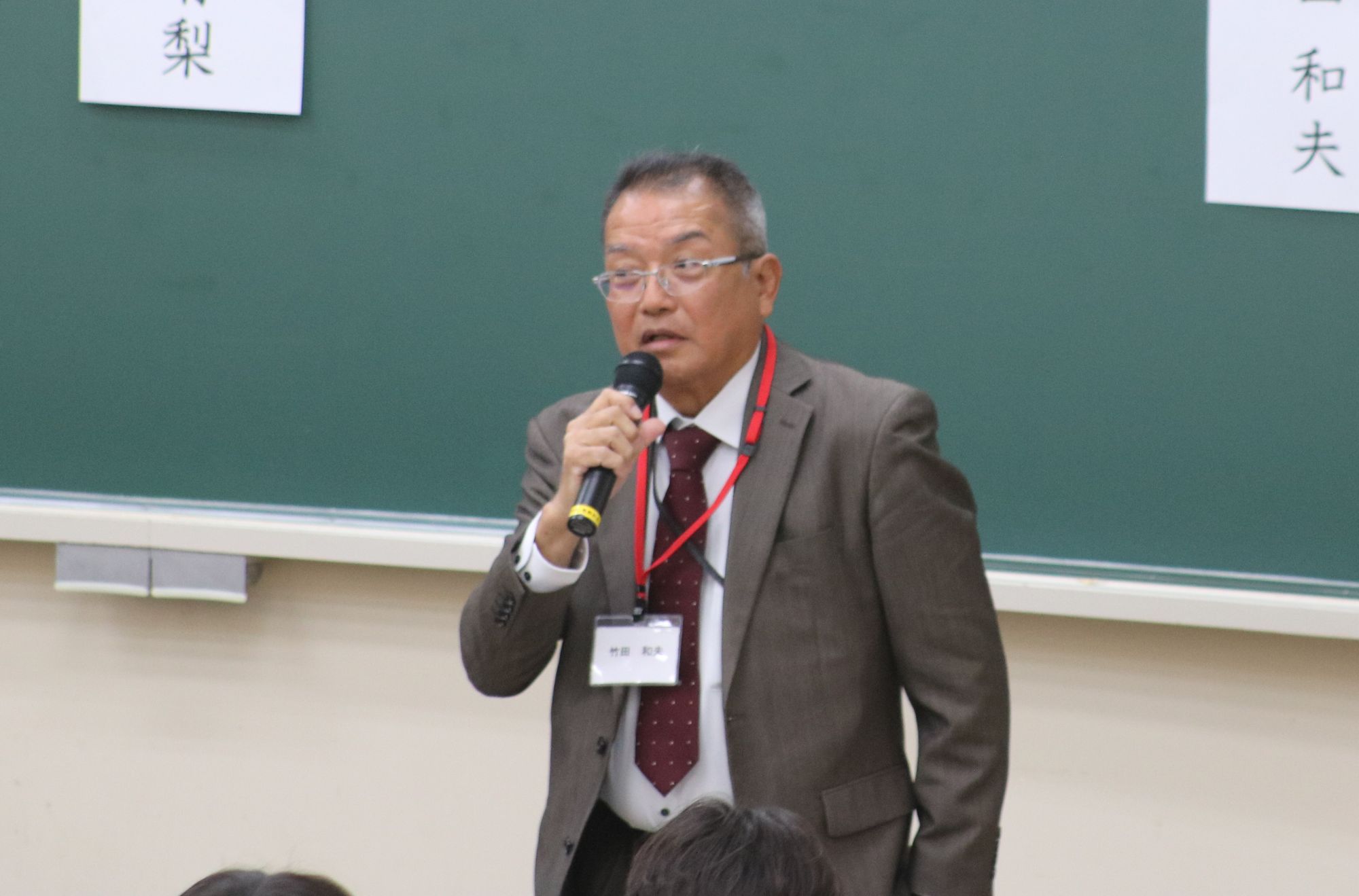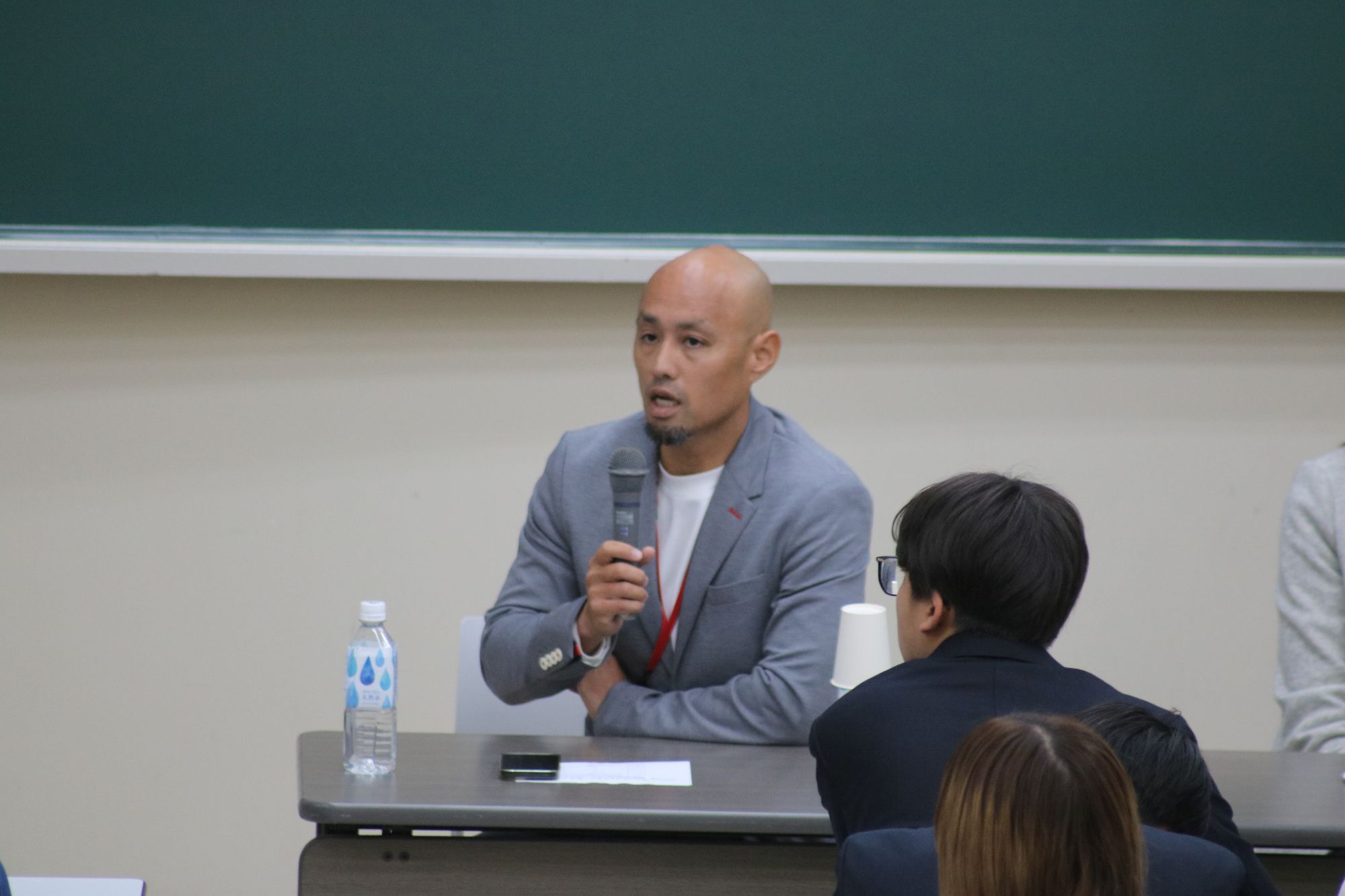 1年生は2チームに分かれ、会場ではプロテニスプレーヤーを引退後、新聞記者に転身した長野宏美さん、少年院で教育や指導にあたる法務教官を長年務め、その後、株式会社よしもとエンタテインメント沖縄エグゼクティブプロデューサーとなった竹田和夫さんなど、様々なジャンルで活躍する方が講師として登壇し、自身の体験を話しました。