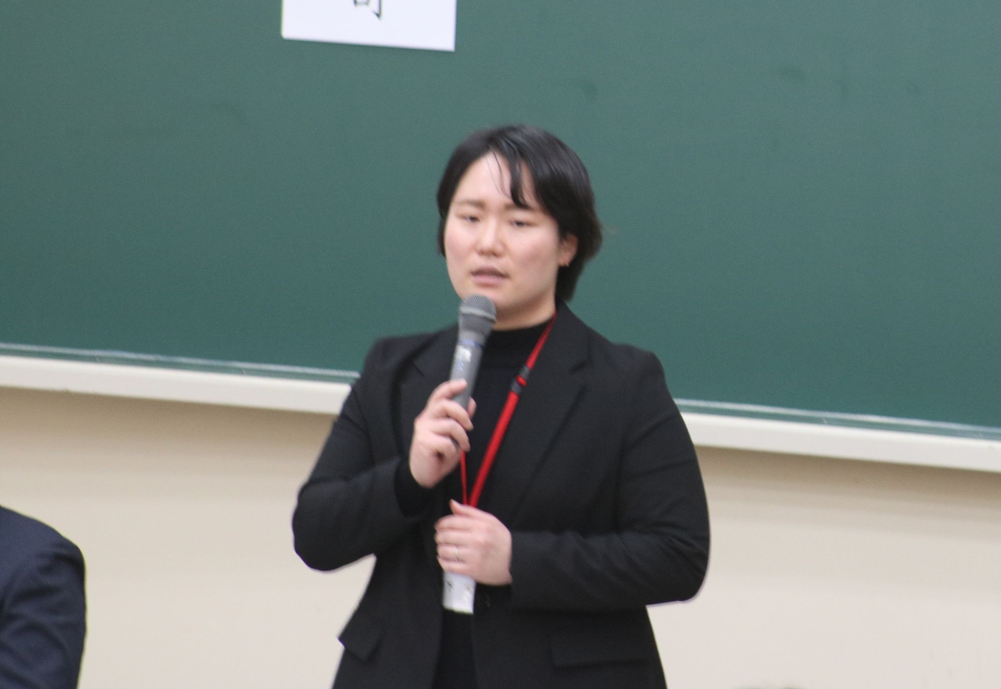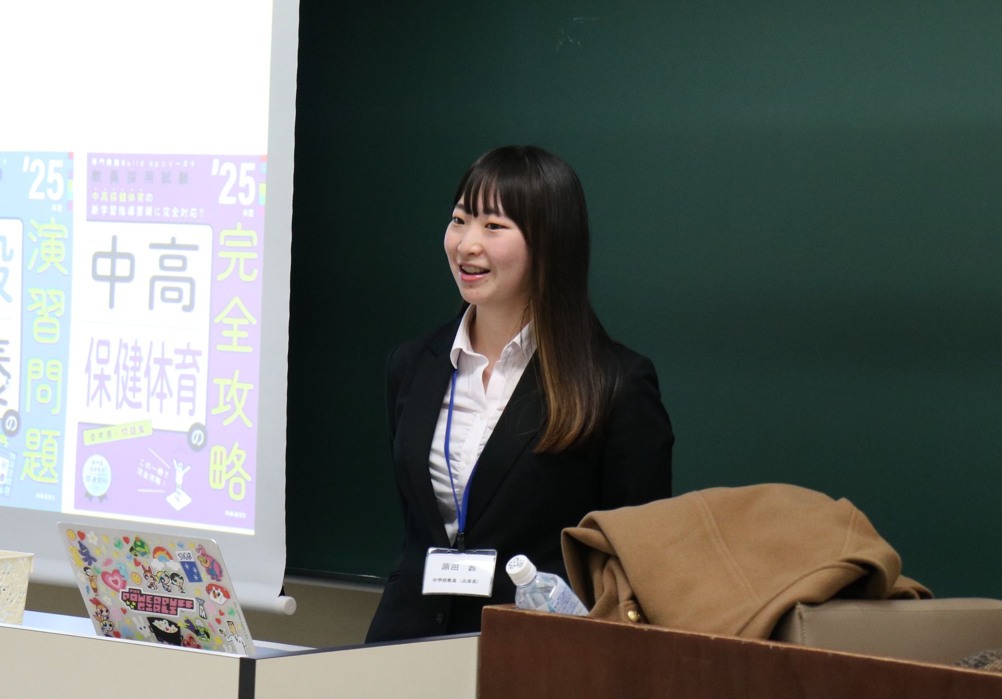 【森下有梨さん】大阪府教育庁教育振興室保健体育課。「昔、バックパッカーとして世界を回った時、毎日が衝撃の連続だった。海外で子供が劣悪な環境に置かれているのを目の当たりにし、教育の大切さを実感した。皆さんが大学まで進学できていることは当たり前ではなく、実はかなり恵まれた環境。若さは最大の武器なので、色々と経験してみてほしい」