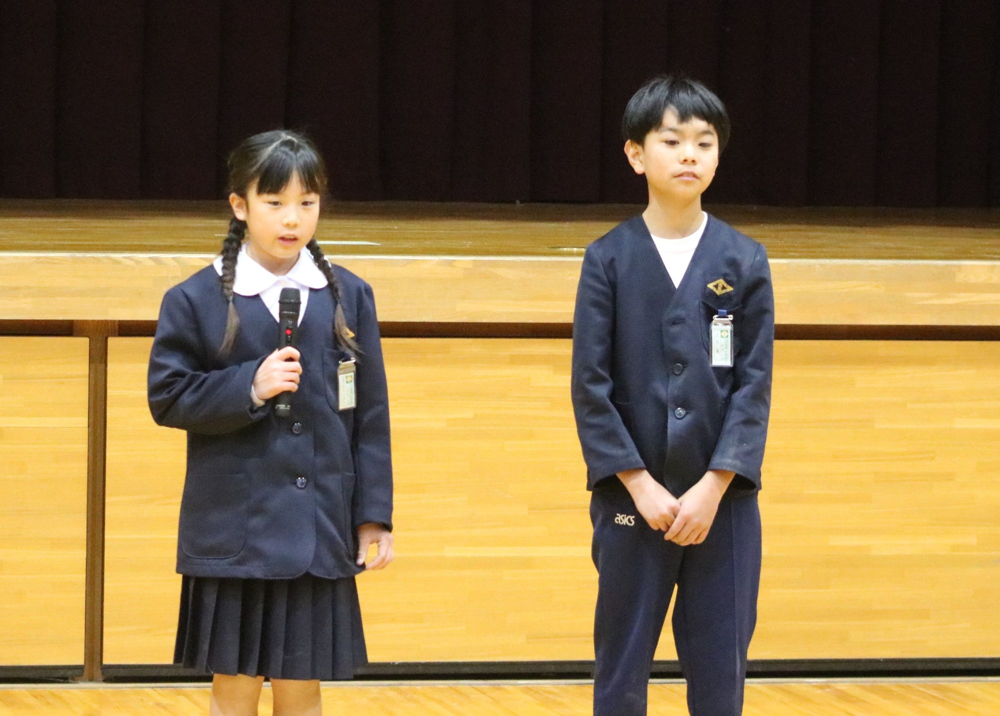 児童代表あいさつで、しっかりスピーチする児童