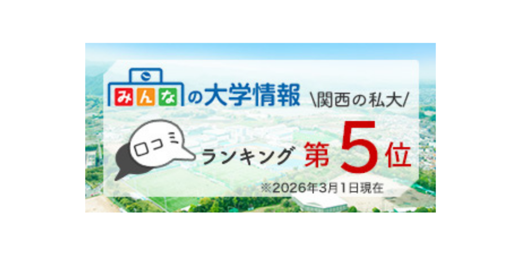 学校情報ポータルサイト利用者数最多の「みんなの大学情報」の口コミランキング総合評価で、大阪体育大学が関西の私立大学中、5位(対象118校)にランクされています(2026年3月1日現在)。