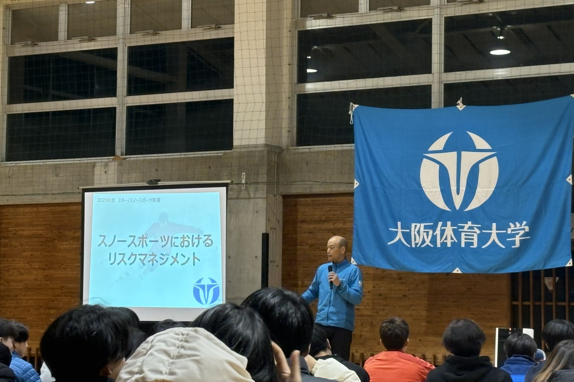 さらに、大阪体育大学のスキー実習・スノースポーツ実習は、外部インストラクターに頼らず、本学の教員が学生を指導することが大きな特徴です。今回のスキー・スノースポーツ実習では、教員15人がスキーを、11人がスノーボードを指導しました。また、パリ五輪ではウェルフェアオフィサーとして日本選手団に帯同し選手の支援に携わった土屋裕睦教授(スポーツ心理学)らが学生たちの生活サポートにあたりました。