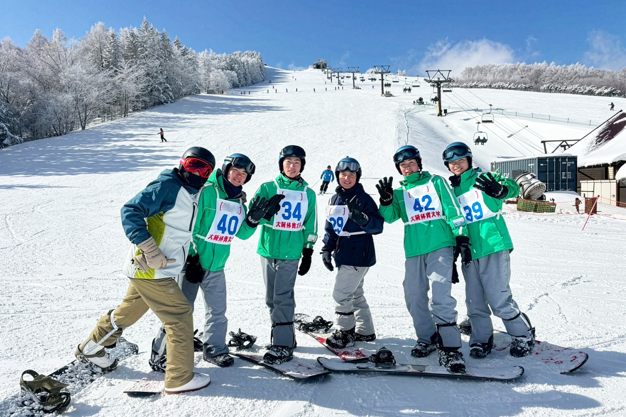 大阪体育大学のスキー・スノースポーツ実習が、長野県の菅平高原スノーリゾートで実施され、スポーツ科学部(1、2年)、体育学部(3、4年)の計181人が参加しました。