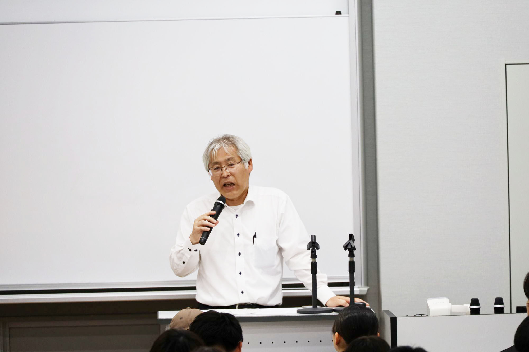 大阪体育大学は4月20日(月)、1年生を除く全学生を対象にした安全講習会を始めました。バイク・自転車の運転マナーや薬物乱用、闇バイトについて泉佐野警察署の担当者を招いて注意喚起するもので、この日は2年生約736名が参加しました。