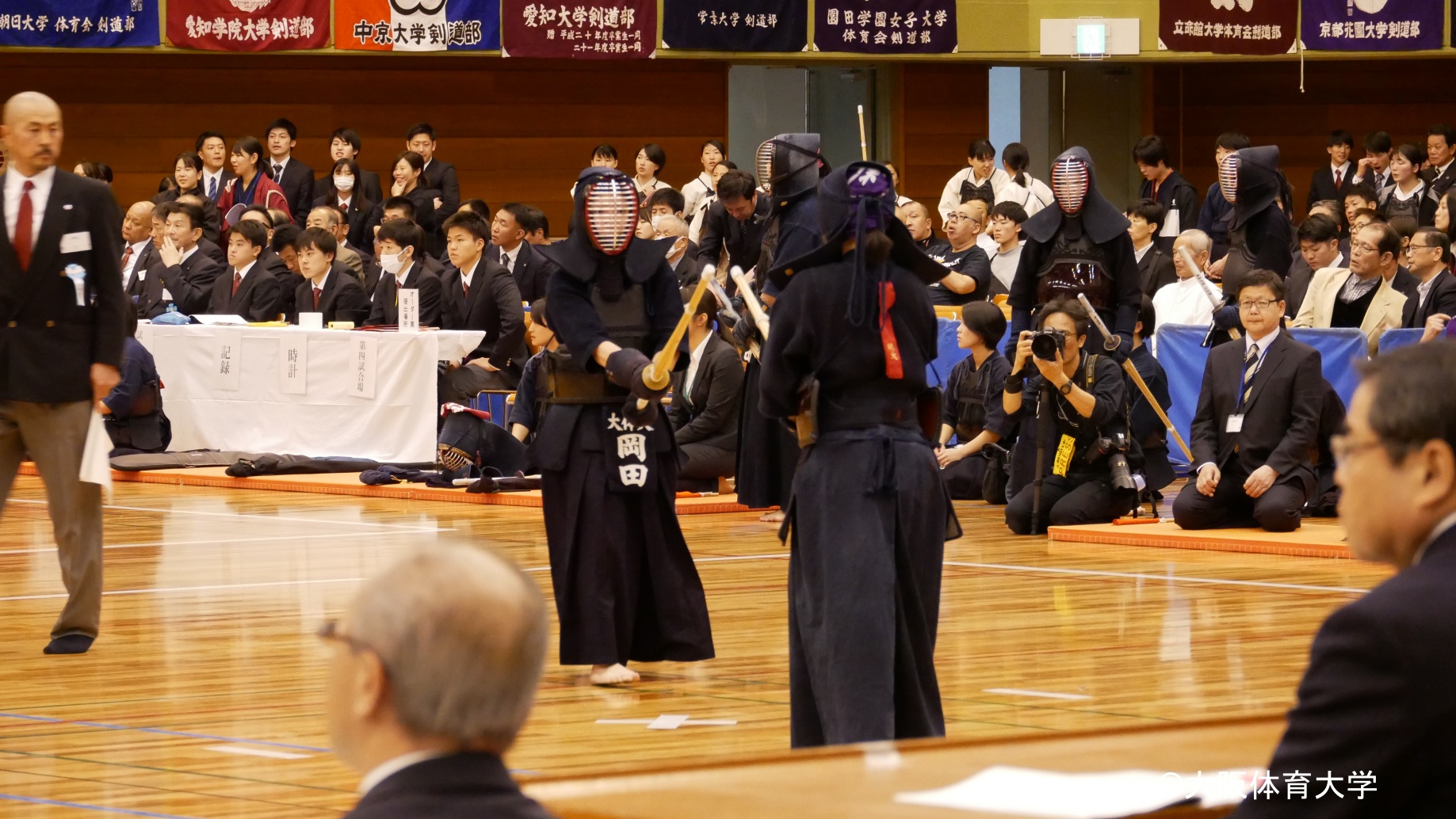 2019年11月10日、愛知県春日井市で開催された「第38回全日本女子学生剣道優勝大会」は、9月に本大会の予選会も兼ねて開催された「関西女子学生剣道優勝大会」を2位で通過した本学と、同じく「関東学生剣道優勝大会」を3位で本大会の出場を決めた明治大学(2018年準優勝、2016年は優勝)の東西の強豪同士の1回戦となった。