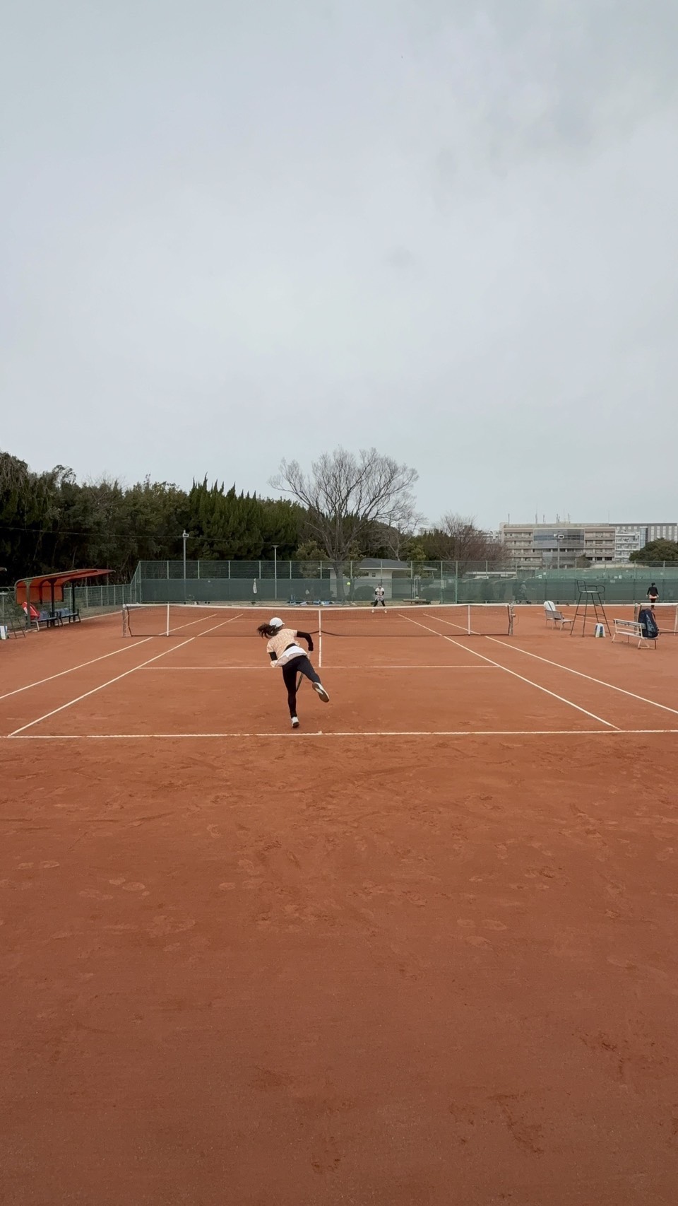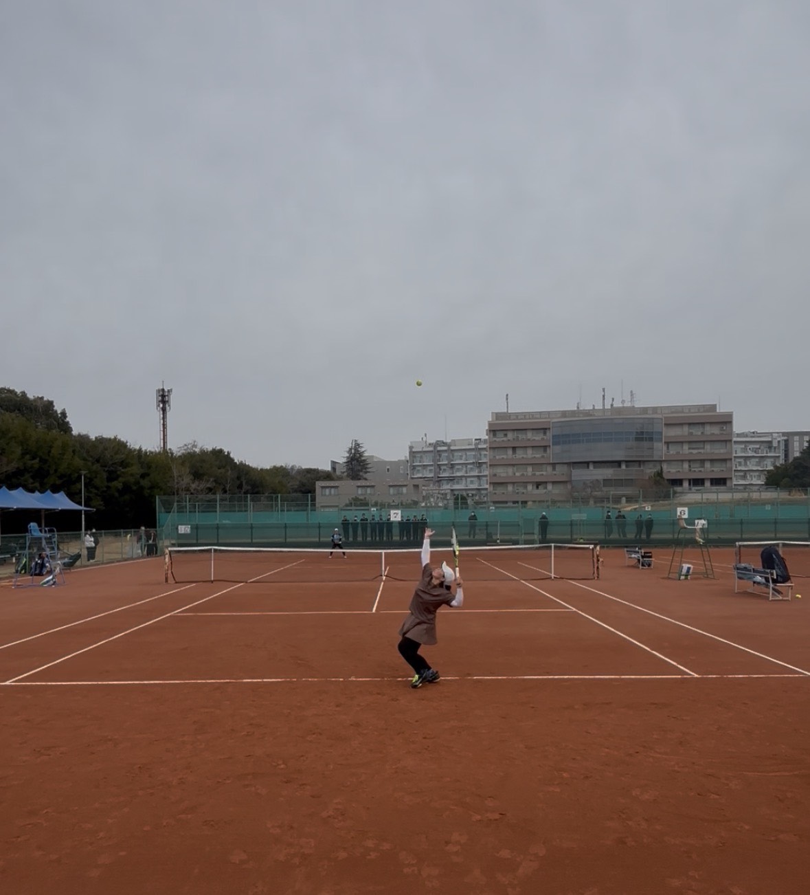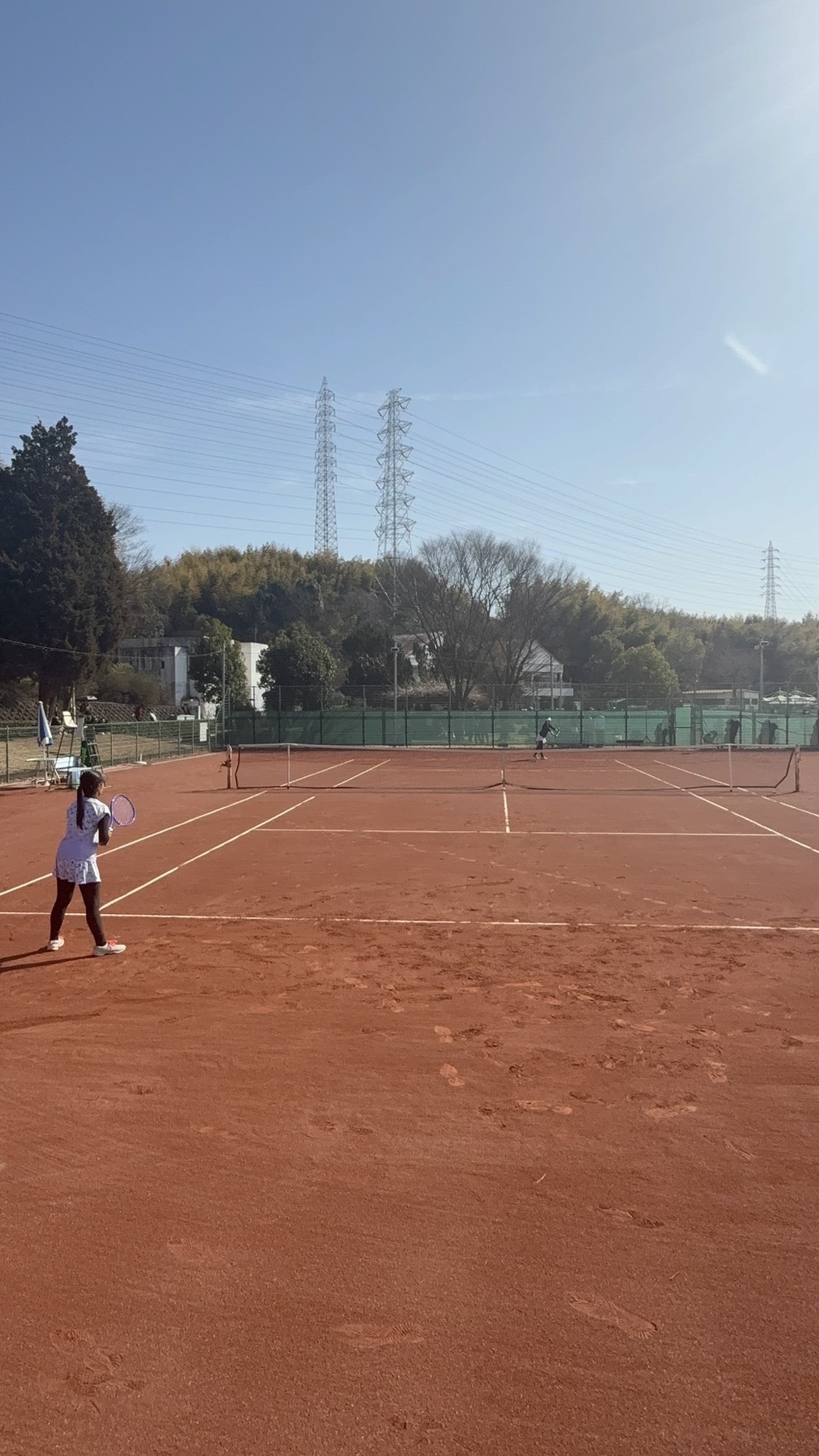 1stセットは落としたものの,2ndセットは少しラリーのテンポを落としたことで,相手のミスも増えゲームを重ねられるようになりましたが,5-5で日没サスペンデッド.